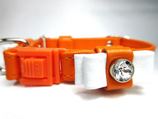 | 軽量でワンタッチ装着ができるタイプの首輪です。 可愛い二枚重ねのリボンが3個付きで、センターにヨーロッパ製の高品質なクリスタルガラスを使用致しております。 牛革製で愛犬の毛にやさしい全てヘリを返した高級仕上げにいたしております。サイズ調整も可能です。 表示以外の配色も承っております。 |
