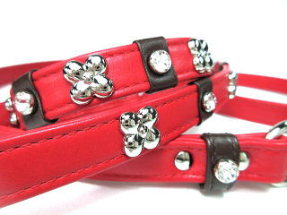 | リードの本体及び別色の巻き革は牛革製で全てヘリを返した高級仕上げです。 メタリックフラワーの飾り金具と別色の巻き革の上にヨーロッパ製の高品質な7mmのクリスタルガラスを使用した高級感のあるキュートな犬用リードです。 表示以外の配色も可能です。 小型犬~大型犬に対応しております。 持ち手は、取り外し可能タイプです。 リードの長さのサイズオーダーも可能です。 |